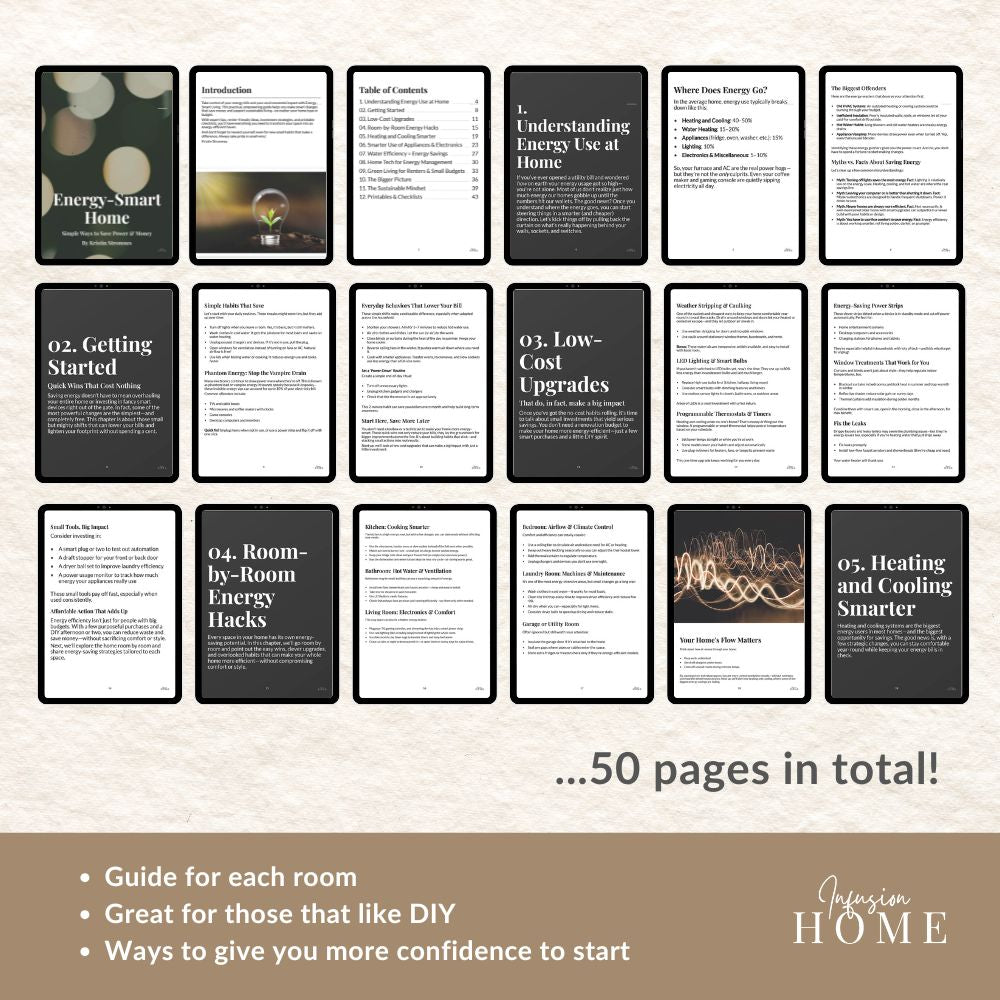 You’ll get expert insights, beginner-friendly upgrades, printable checklists, and low-cost DIY tips across every room in your house. From heating and cooling hacks to smart water use and green tech tools, this ebook is your go-to resource for energy efficiency that fits your lifestyle—and your budget.