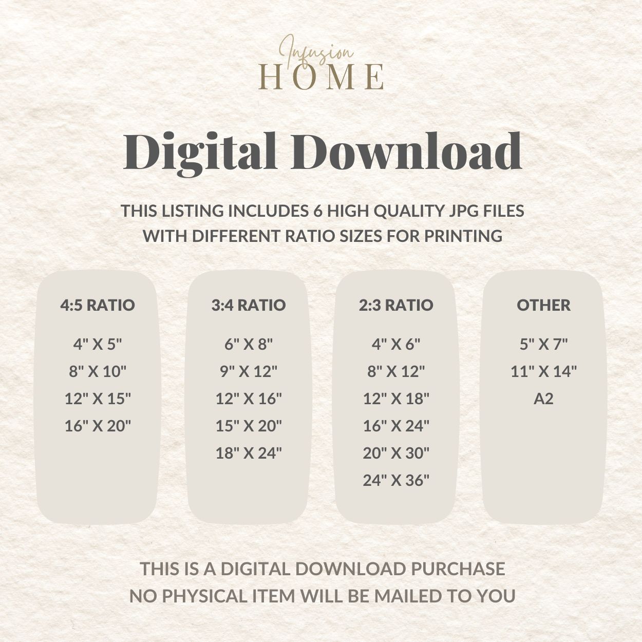 High-resolution (300 dpi) jpg digital prints shown in images, which means the images will retain a high level of clarity when enlarged.